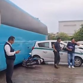 ⚠️ #VIDEO: Fuerte Accidente de Tránsito Involucra Autobús, Taxi y Motocicleta en Cancún