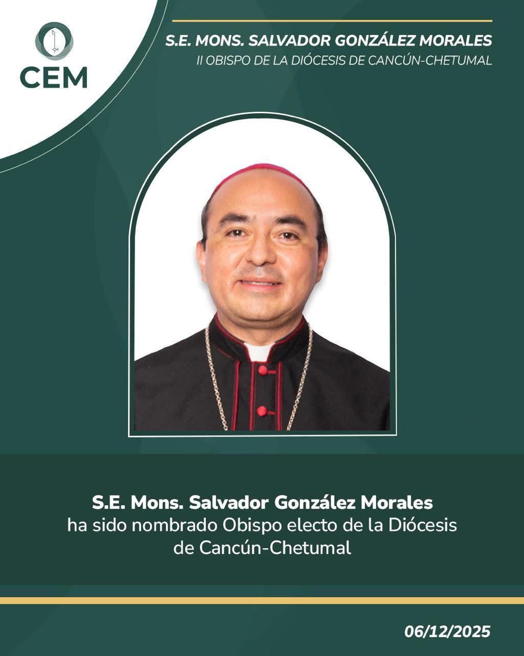 Salvador González Morales, originario de Ciudad de México y nacido en 1971, ocupaba hasta ahora el cargo de Obispo Auxiliar de la Arquidiócesis de México. Con su nombramiento, asumirá la responsabilidad pastoral de una diócesis que alberga a más de un millón de católicos en los estados de Quintana Roo, abarcando las ciudades de Cancún y Chetumal.