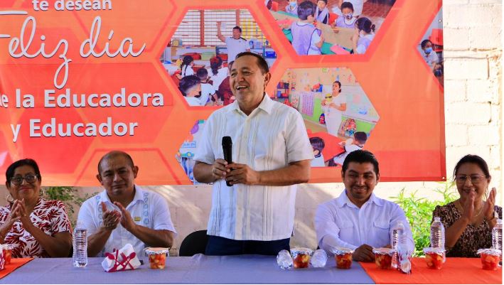 Kantunilkín, Quintana Roo, 21 de abril de 2026.– En el marco del Día de la Educadora en Lázaro Cárdenas, el presidente municipal Nivardo Mena convivió con maestras y maestros de nivel preescolar, reconociendo su papel clave en la formación de la niñez. La celebración incluyó un desayuno especial organizado para agradecer la labor que realizan día a día en las aulas.