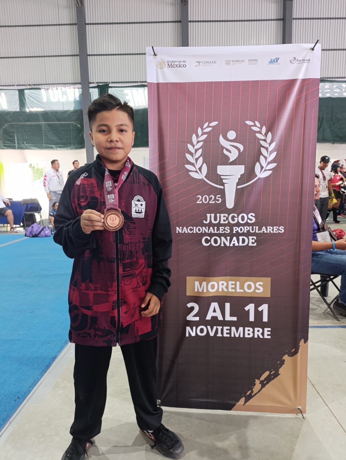 Finalmente, la cosecha de medallas de la jornada se completó con un metal de bronce, logrado por Axel Fernando Aquino Méndez. Al igual que Nicolás, Axel compitió en la prueba de Formas con Arma Corta dentro de la categoría 10 a 12 años, asegurando el tercer puesto nacional. Estos resultados confirman el potencial y el trabajo formativo que se realiza en el deporte de Quintana Roo.