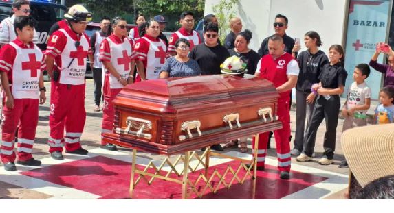 Como parte del homenaje a la víctima, personal de la Cruz Roja Mexicana realizó una ceremonia de pase de lista a cuerpo presente para despedir a Ginger Mariel Arana Peña, reconociendo su trabajo y compromiso con la atención de emergencias en la región.