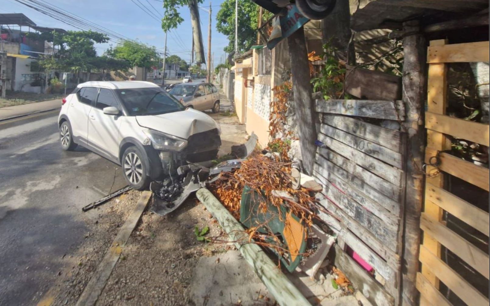 Accidente en Av. Diagonal Tulum: Nissan pierde el control y causa múltiples daños en la SM 89