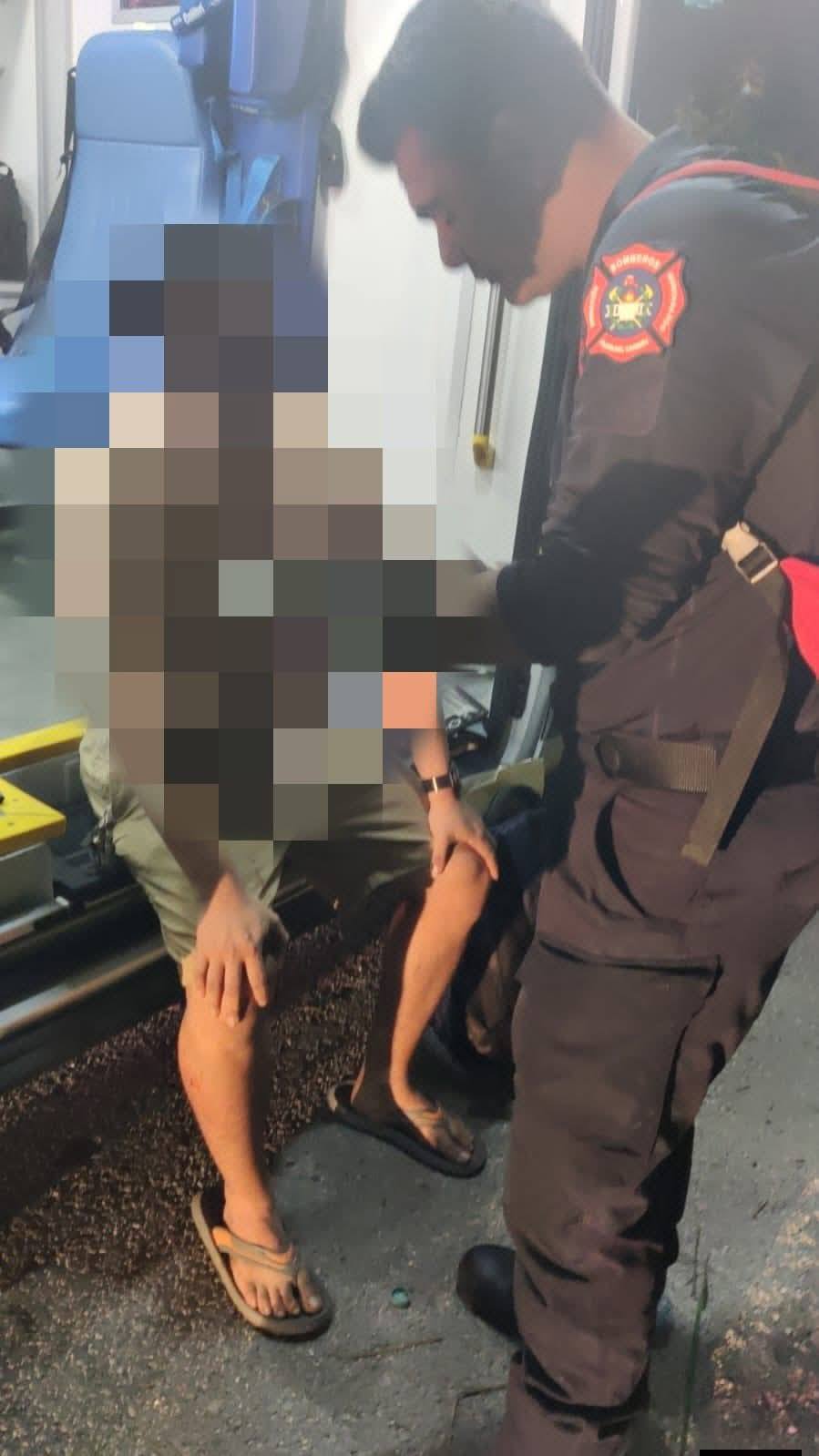 Paramédicos brindaron atención prehospitalaria a Rolando “N”, de 32 años de edad, originario de Cozumel, quien resultó con policontusiones tras el accidente vial en Punta Venado. El lesionado fue estabilizado en el lugar, sin que hasta el momento se reportara su traslado de urgencia a un hospital.