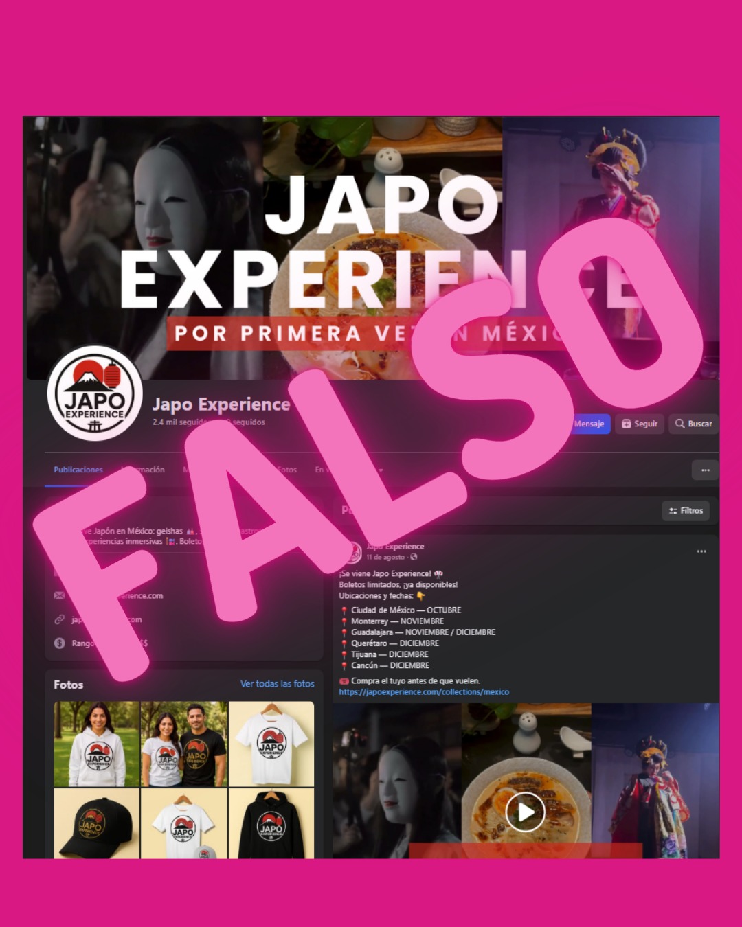 27 DE DICIEMBRE DE 2025. Autoridades y organizadores de Parque Cancún emitieron una alerta de estafa Parque Cancún para advertir a la ciudadanía sobre la existencia de una página en redes sociales que no tiene ningún vínculo con el parque ni con sus eventos oficiales. Se trata del perfil denominado “Japón Experience”, el cual ha sido identificado como un sitio no autorizado que puede inducir a error a los usuarios.