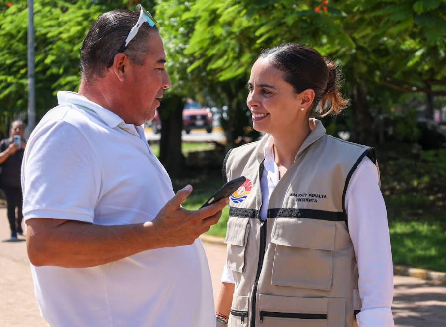 23-Octubre-2025.-.Con el compromiso de fortalecer la movilidad urbana y ofrecer espacios más dignos para los ciudadanos, la Presidenta Municipal, Ana Paty Peralta, supervisó el avance del proyecto de renovación de dos paraderos en la Avenida Tulum, ubicados frente al Mercado Ki Huic y el Hotel Parador, a los costados del Palacio Municipal.