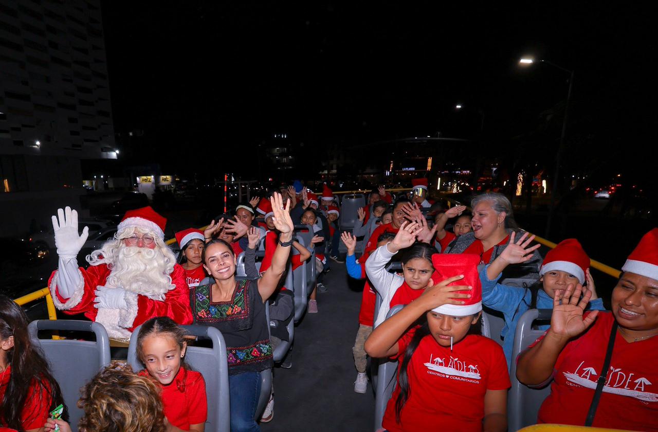 Previo al conteo regresivo que encendió la iluminación, la alcaldesa compartió un mensaje de buenos deseos con los presentes: “Les deseo en esta Navidad que sean inmensamente felices, que nos cuidemos, que estemos juntos y unidos, que la pasemos en familia, que disfruten todos los momentos y que no se acaben estas tradiciones que nos unen a todas y a todos”. Posteriormente, Ana Paty Peralta se trasladó en el Turibus junto a niños de un centro comunitario de Alfredo V. Bonfil, llevando consigo la alegría navideña.
