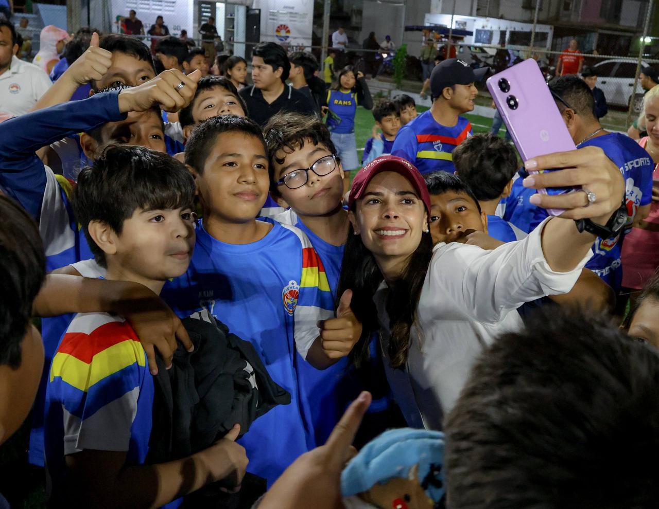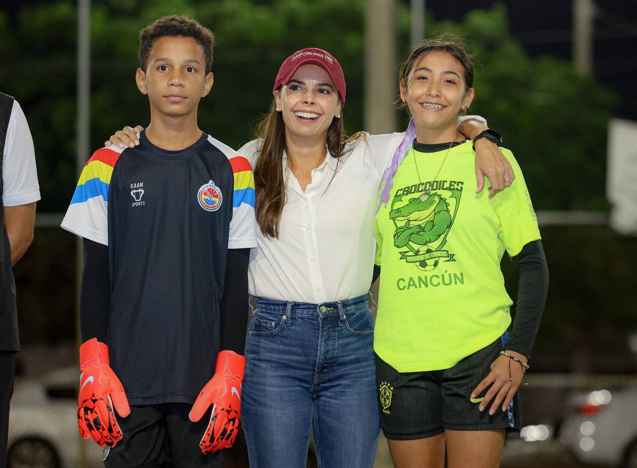 Cancún, Q. R., a 12 de noviembre de 2025.- Con un firme compromiso de utilizar el deporte como un motor clave para el desarrollo social y comunitario, la Presidenta Municipal, Ana Paty Peralta, inauguró oficialmente la cancha de pasto sintético “El Omni la Guadalupana” en la Supermanzana 217. Este nuevo espacio representa una mejora significativa para las familias de Cancún, ofreciendo un área digna, segura y de calidad para la práctica deportiva. La inauguración de canchas forma parte de un esfuerzo municipal por mejorar la infraestructura y fomentar la activación física en toda la ciudad.