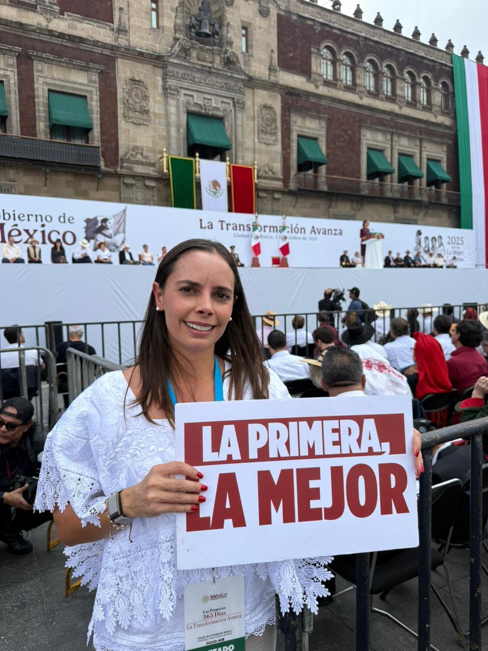 Cancún, Q. Roo, a 5 de octubre de 2025.– La Presidenta Municipal de Benito Juárez, Ana Paty Peralta, se hizo presente en el Primer Informe de Gobierno de la Presidenta de México, Claudia Sheinbaum Pardo, realizado en el Zócalo capitalino, reafirmando su respaldo al proyecto de la Cuarta Transformación. La alcaldesa destacó que el liderazgo federal impulsa a los gobiernos locales a trabajar de manera conjunta y cercana con la ciudadanía.