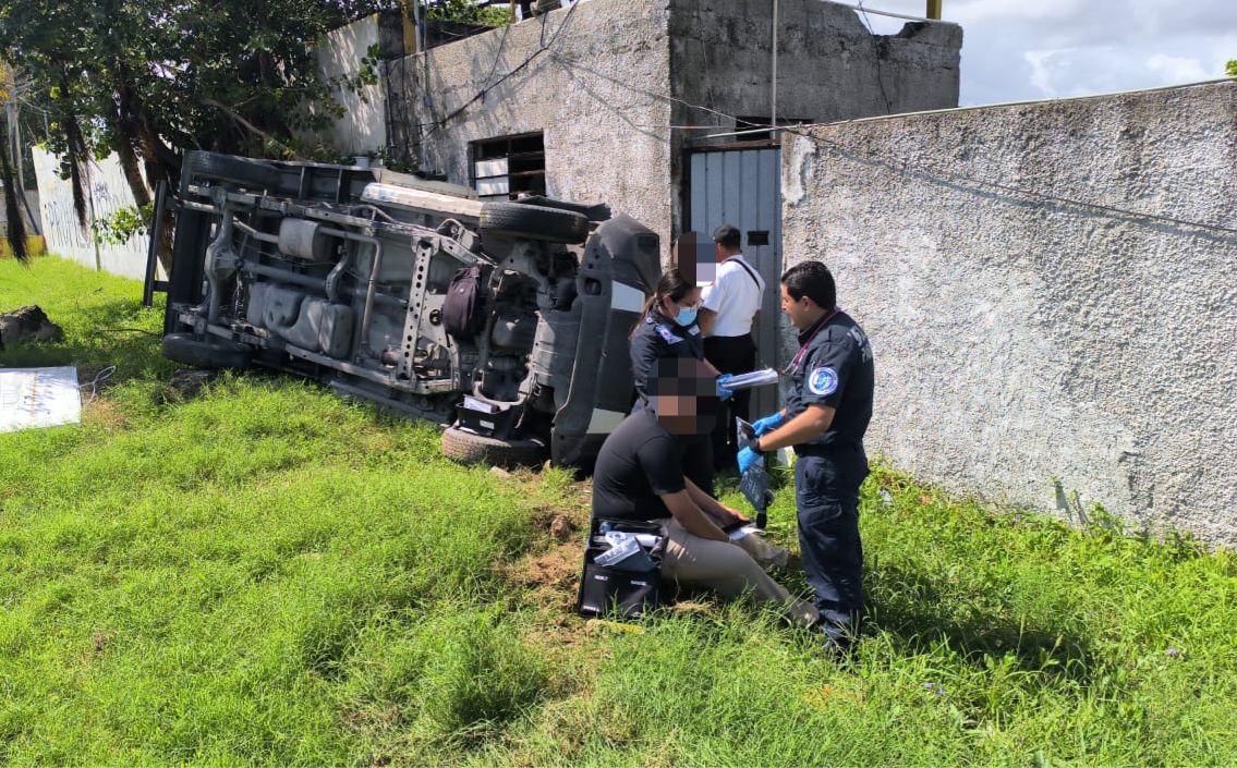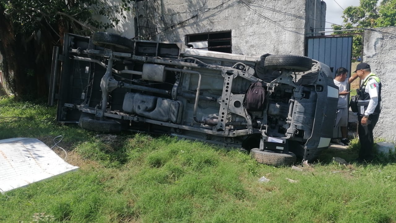 La falta de control hizo que la camioneta Nissan se subiera violentamente a la guarnición (el borde de la banqueta). El impacto y la velocidad no permitieron que el vehículo se detuviera ahí. La unidad continuó su trayectoria errática por varios metros sobre el camellón lateral, hasta que finalmente la inercia provocó que la camioneta terminara volcándose de manera aparatosa, quedando recostada sobre uno de sus lados como posición final.