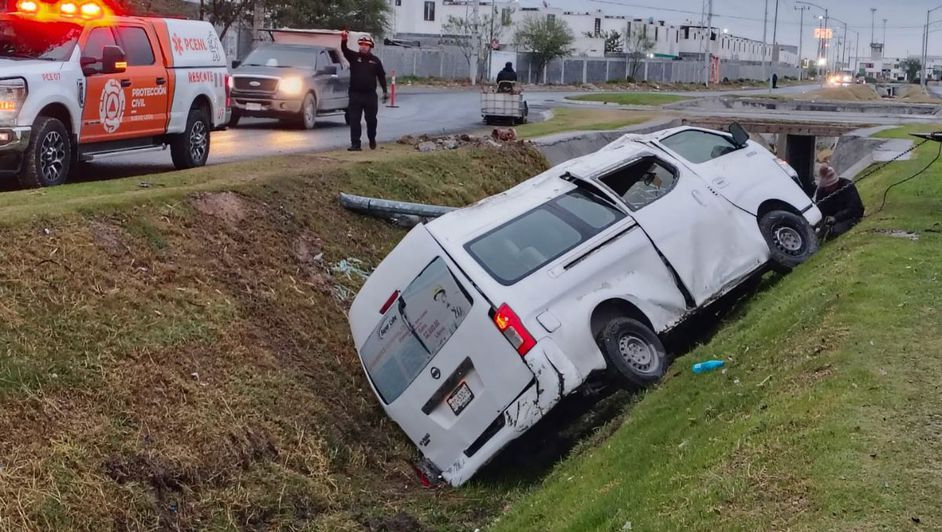 20 de Enero del 2026.- La mañana de este martes se registró un fuerte percance vial en el municipio de Salinas Victoria, Nuevo León, que movilizó a los cuerpos de auxilio. Una camioneta destinada al traslado de trabajadores terminó volcada en el fondo de un canal pluvial tras perder el control en una zona residencial. El incidente ocurrió cerca de las 07:00 horas, en un momento donde la visibilidad y las condiciones del suelo jugaron un papel determinante para el conductor de la unidad.