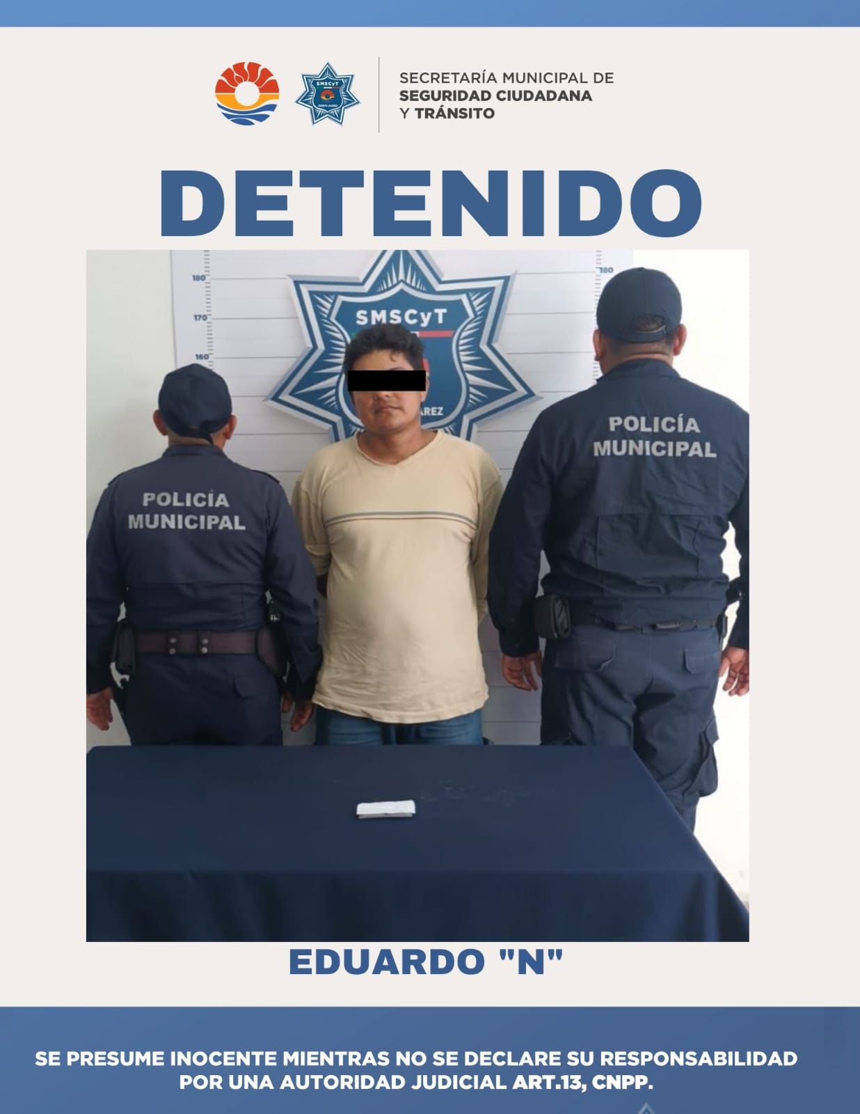 6 DE OCTUBRE DEL 2025 – LOCAL. Un individuo identificado como Eduardo “N”, de 32 años, fue detenido por elementos de la Secretaría Municipal de Seguridad Ciudadana y Tránsito (SMSCyT) de Benito Juárez. La detención se llevó a cabo por la presunta comisión del delito contra la seguridad del tránsito de vehículos y encubrimiento. Esta acción se enmarca en los operativos constantes que las autoridades realizan para mantener el orden y la legalidad en las calles de la ciudad, enfocándose en vehículos que podrían estar involucrados en actividades ilícitas.