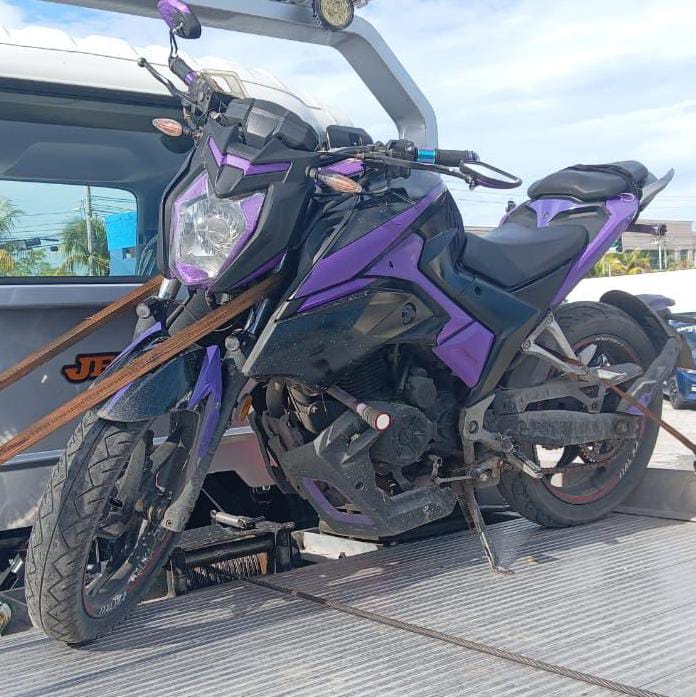 La actitud evasiva del individuo motivó a los oficiales a realizar una inspección de rutina. Al acercarse a la motocicleta, marca Italika, de color negro con morado, los agentes procedieron a verificar su estatus. Una de las primeras irregularidades detectadas fue que el número de serie de la unidad estaba visiblemente alterado, un claro indicio de que el vehículo podría no ser legítimo o legal.