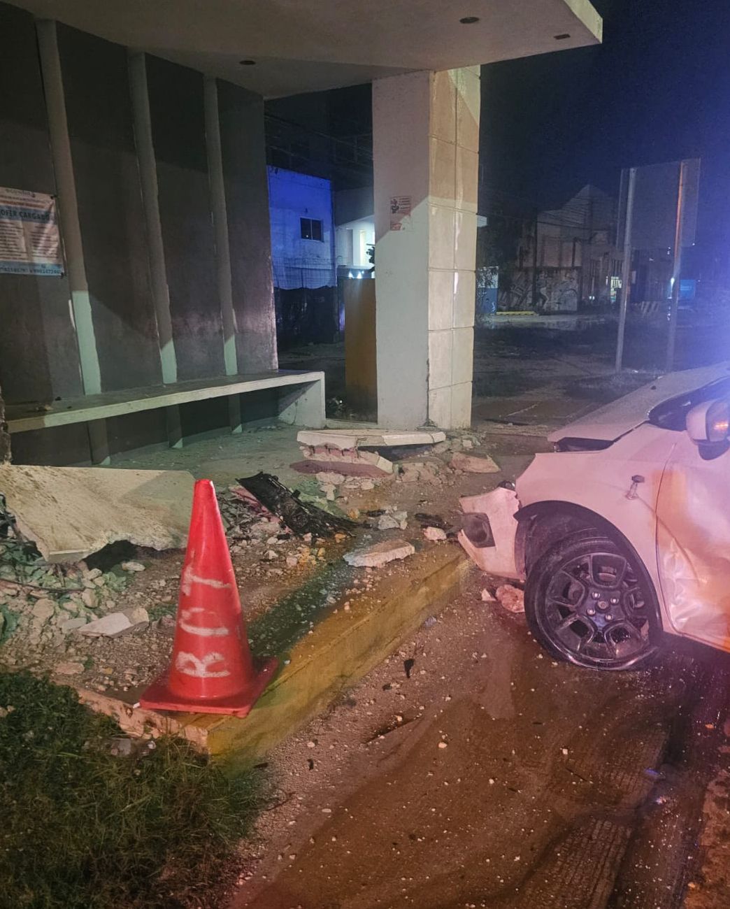 Al sitio arribaron elementos de la Dirección de Tránsito para tomar conocimiento de los hechos y realizar el peritaje correspondiente. Confirmaron que el accidente solo arrojó como saldo daños materiales, tanto en el vehículo Suzuki Ignis, que presentaba afectaciones en su parte frontal y lateral derecha, como en el paradero, cuya estructura y asientos resultaron visiblemente dañados. El conductor fue valorado en el lugar, confirmándose que no presentaba lesiones.