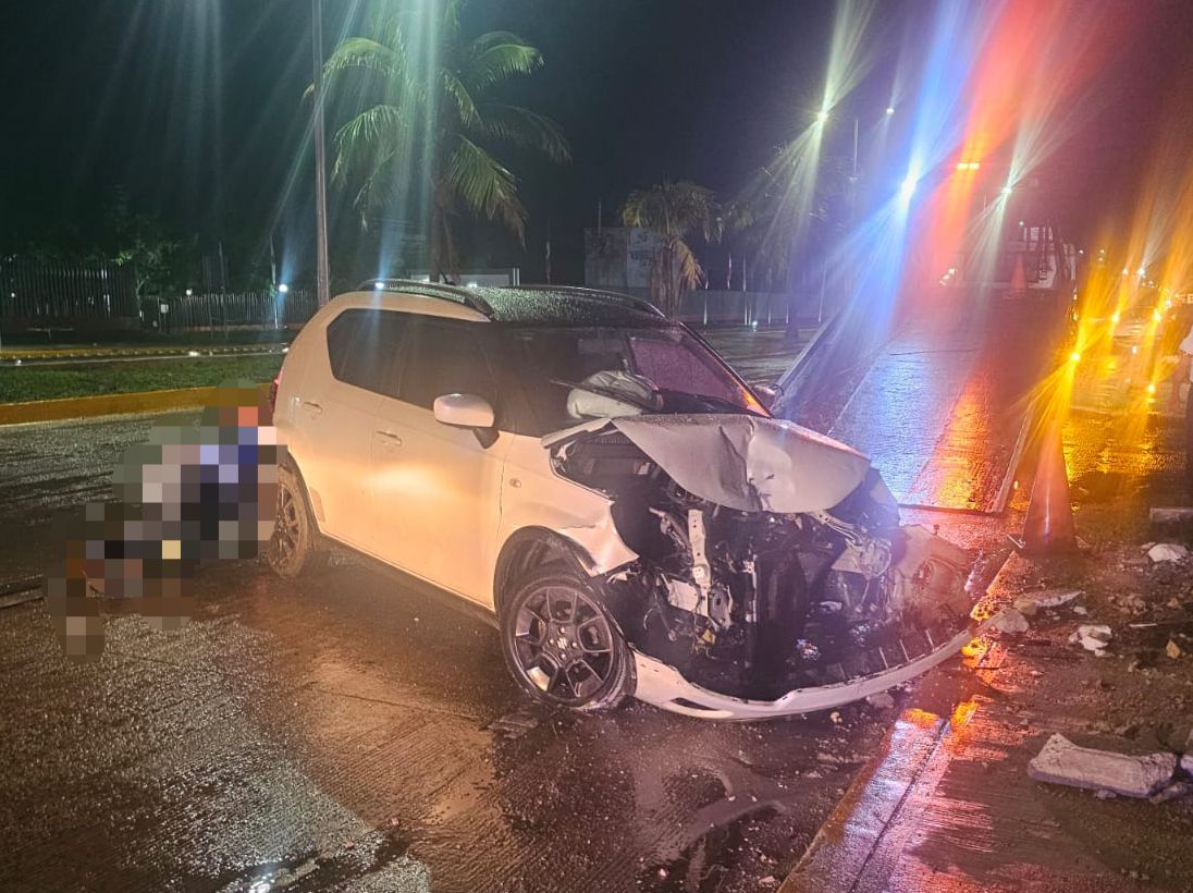 20 de Octubre del 2025.- Un accidente vehicular se registró durante las primeras horas de la madrugada deL este domingo, sobre el transitado Boulevard Colosio de Cancún. El incidente, que por fortuna no dejó personas lesionadas, tuvo lugar aproximadamente a las 03:40 horas, justo frente a las instalaciones de la Universidad Anáhuac, en la Supermanzana 307. El protagonista del percance fue el conductor de un automóvil compacto de la marca Suzuki, modelo Ignis y de color blanco.