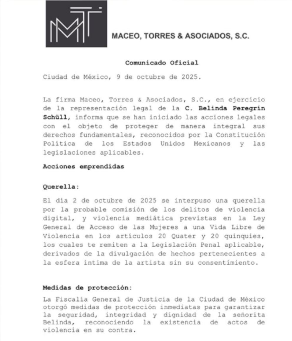 El equipo legal de Belinda difundió un comunicado en el que subraya la gravedad de la situación, enfatizando que la fama no otorga derecho a nadie para exponer la vida privada de una persona. La defensa de la cantante argumenta que la revelación de aspectos íntimos sin consentimiento explícito, así como la utilización no autorizada de su imagen, constituyen actos de violencia digital y de género. Estas acciones, señalan, no solo atentan contra la dignidad de la artista, sino que también representan una clara violación a sus derechos humanos fundamentales.