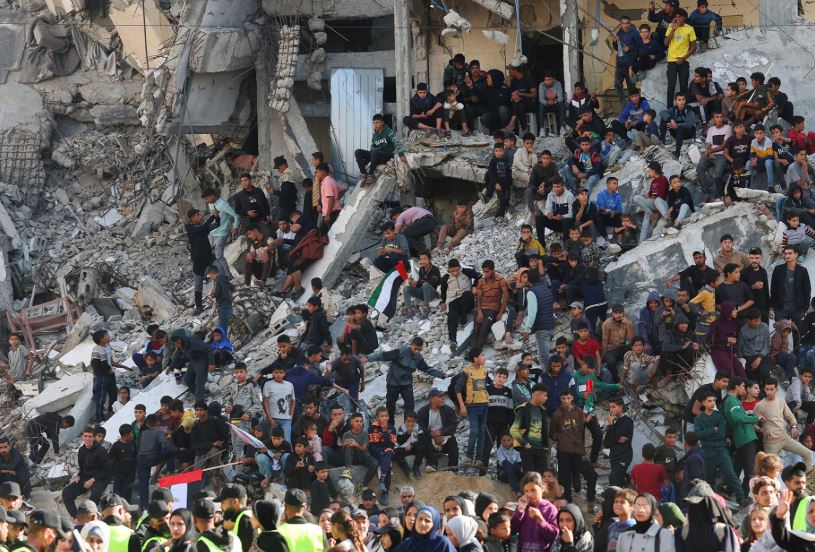 4 DICIEMBRE 2025-INTERNACIONAL- La ciudad de Khan Yunis, al sur de la Franja de Gaza, vivió este martes una escena única: una macroboda de 54 parejas que buscó homenajear la vida en medio de la destrucción. El evento se realizó entre edificios derruidos de la zona residencial de Hamad y contó con el apoyo de Abu Dabi, sumándose a la celebración del 54° Día de la Unión de los Emiratos Árabes Unidos. La iniciativa, más que un acto festivo, se convirtió en un mensaje de resistencia emocional para una población golpeada por meses de devastación.