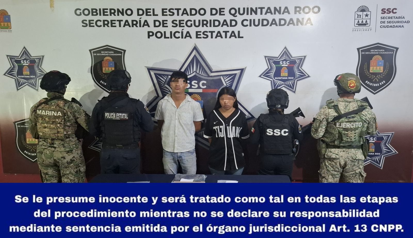 En una acción coordinada entre la Policía Estatal, la Secretaría de Marina y el Ejército Mexicano, se logró la detención de un hombre y una mujer en la Supermanzana 201 de Cancún. Los hechos ocurrieron durante un operativo de vigilancia diseñado para prevenir conductas delictivas en zonas habitacionales. Los agentes detectaron un comportamiento sospechoso que derivó en el aseguramiento de sustancias prohibidas, lo que representa un avance en el combate a los actos ilícitos de narcomenudeo que afectan la tranquilidad de las familias en el fraccionamiento Haciendas Real del Caribe.