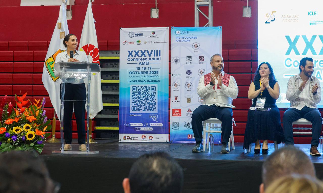 15 de octubre de 2025.– Con la presencia de académicos, investigadores y jóvenes provenientes de más de 20 instituciones públicas y privadas del país, se inauguró en Cancún el XXXVIII Congreso Anual de la Asociación Mexicana de Estudios Internacionales (AMEI), que se llevará a cabo del 15 al 17 de octubre en el Poliforum “Benito Juárez”.
