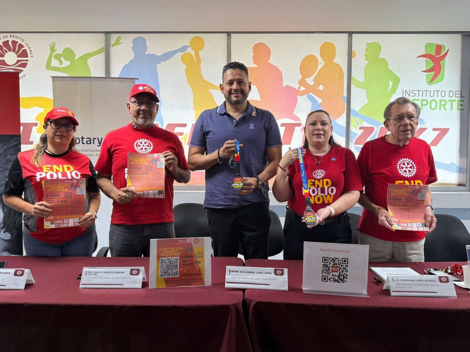 Cancún, Q. Roo, 9 de octubre de 2025.– En el marco de los 40 años de lucha continua contra la poliomielitis, se presentó oficialmente la 1ra Carrera End Polio Now 2025, durante una conferencia de prensa encabezada por el Director General del Instituto del Deporte, Alejandro Luna López, acompañado de autoridades del Club Rotario Cancún Internacional. El evento contó con la presencia de Georgina López Acosta, Presidenta del club; Carlos Alberto Bazán Castro, Presidente del Comité de Proyectos; Jorge Carlos López Mena, exgobernador de Distrito; y Eneida Penélope Ríos Arceo, coordinadora del evento.