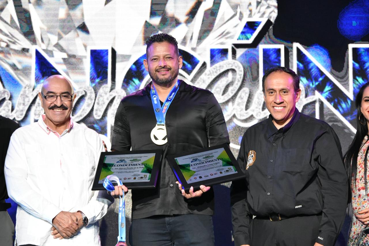 En el marco de la ceremonia, Alejandro Luna López recibió reconocimientos por parte de la Asociación Quintanarroense de Fisicoconstructivismo y Fitness, encabezada por Sebastián Muñoz. También se entregó una distinción especial para la presidenta municipal, Ana Paty Peralta, como muestra de agradecimiento por el apoyo institucional al fortalecimiento de la disciplina.