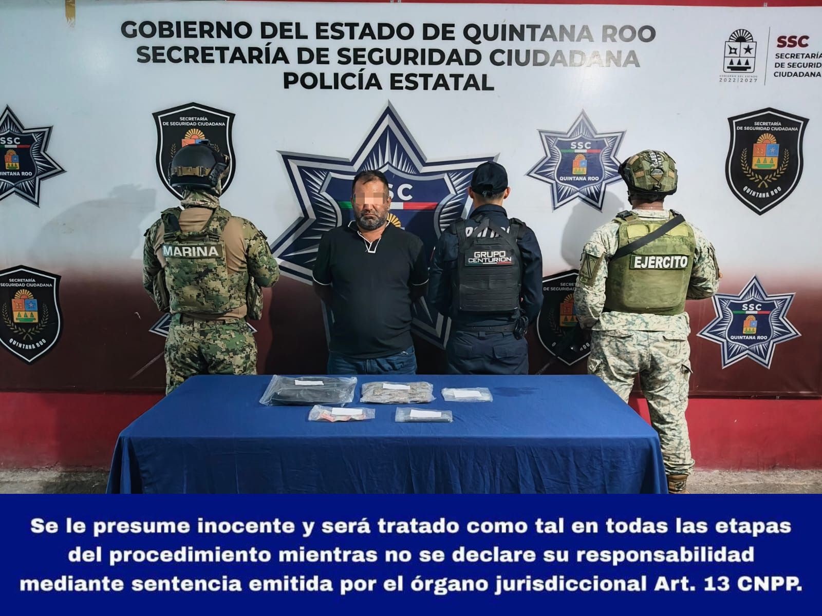 La detención fue ejecutada por el Grupo Centurión de la Secretaría de Seguridad Ciudadana, en un operativo coordinado con la Marina y el Ejército Mexicano. El presunto extorsionador de combis fue interceptado sobre la avenida Tulum, en la supermanzana 65, luego de que intentara evadir la presencia policial. Al momento de su revisión, se le encontraron diversas sustancias ilícitas y artículos que lo vinculan con actividades delictivas, poniendo fin a una racha de impunidad que, según registros, databa desde sus primeros señalamientos por robo en el año 2019.