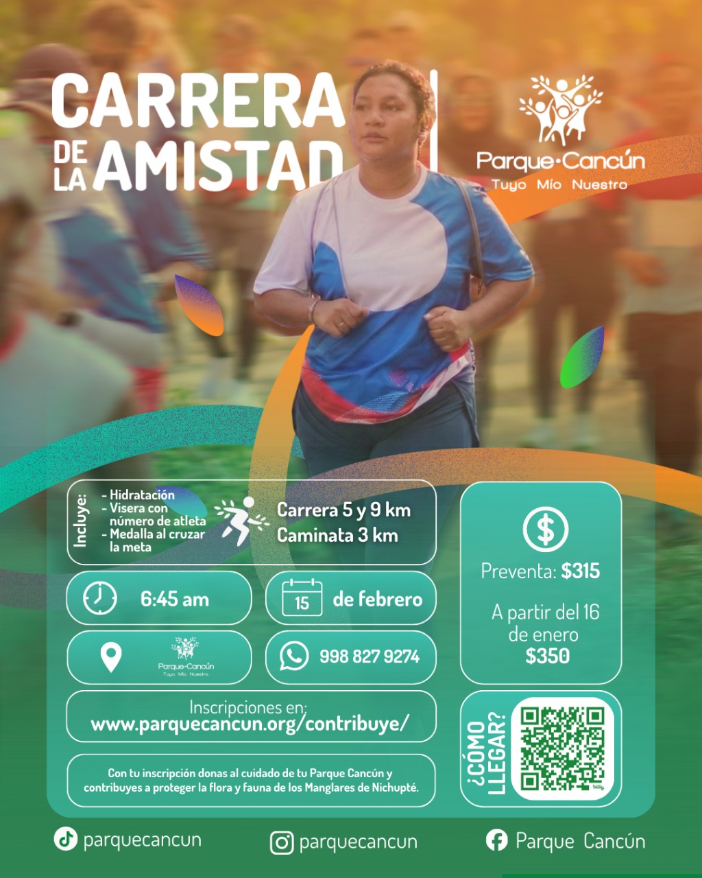 La invitación está abierta para quienes deseen sumarse a una experiencia pensada para compartir en comunidad. La Carrera de la Amistad en Parque Cancún no busca la competencia extrema, sino fortalecer los lazos entre ciudadanos y promover hábitos saludables en un ambiente familiar y accesible para todos.