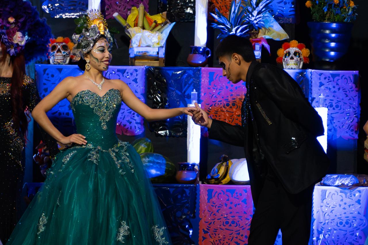 El domingo, segundo día de la “Cena de Ánimas”, no se quedó atrás en cuanto a ambiente festivo y cultural. Brillantemente, los integrantes de los grupos de baile “Pasión y baile”, “Isabella Alarcón” y “Acadanz” cautivaron al público. El ballet folclórico “Herencias de México” puso la nota folclórica con sus diferentes ritmos y vestuarios. Como complemento musical, se presentaron el trío norteño “Los amos del norte” y el trío jarocho “Fina Estampa”, que animaron a la audiencia con un repertorio de melodías populares.