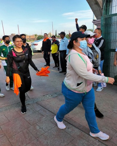 Los alumnos se organizaron por grupos, de primero a sexto, y realizaron actividades recreativas como brincar y bailar al ritmo de canciones infantiles. Algunos padres se sumaron a la dinámica, motivando a los niños y generando un ambiente de comunidad y participación activa, mientras dejaban sus mochilas pegadas a la pared para las actividades posteriores.