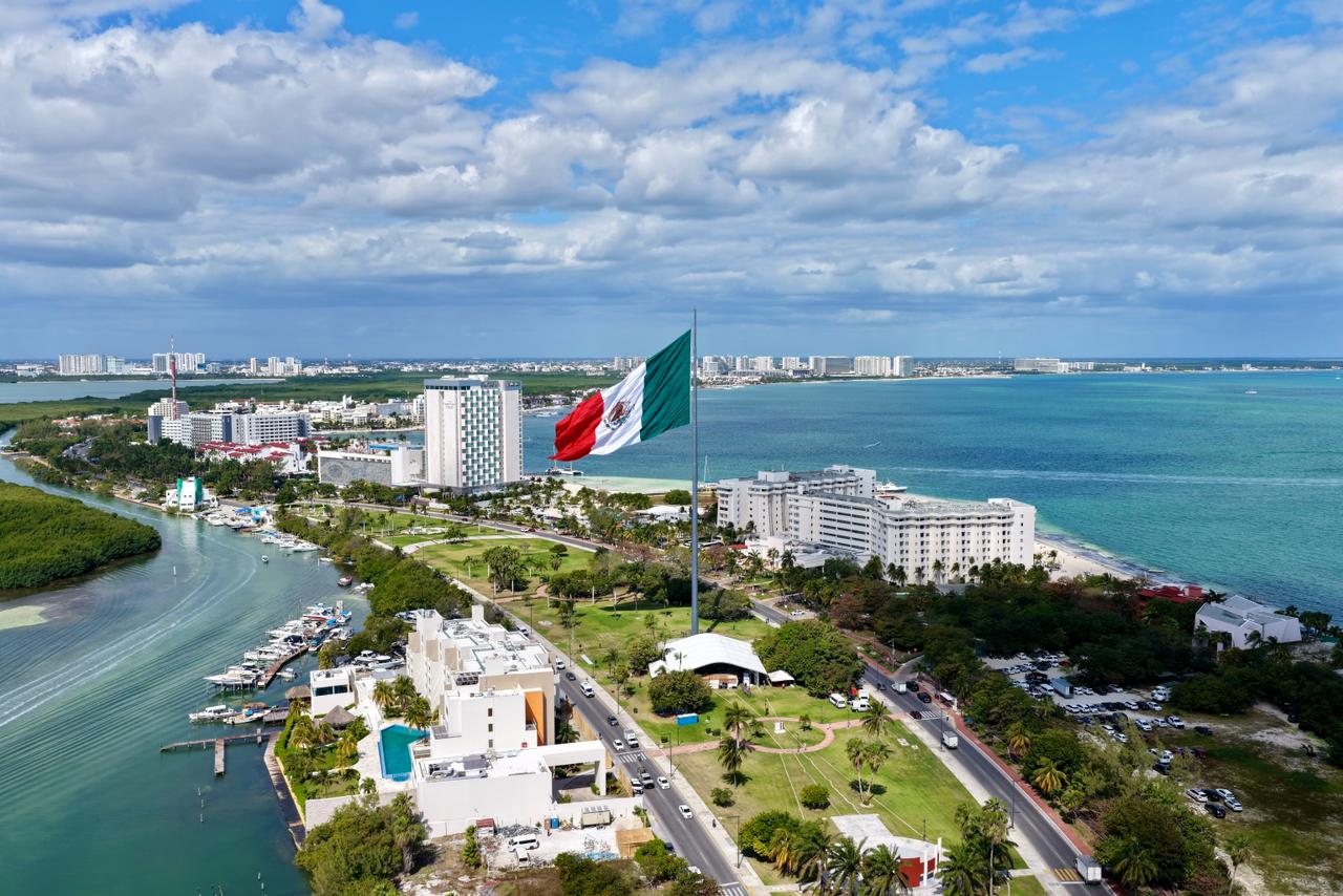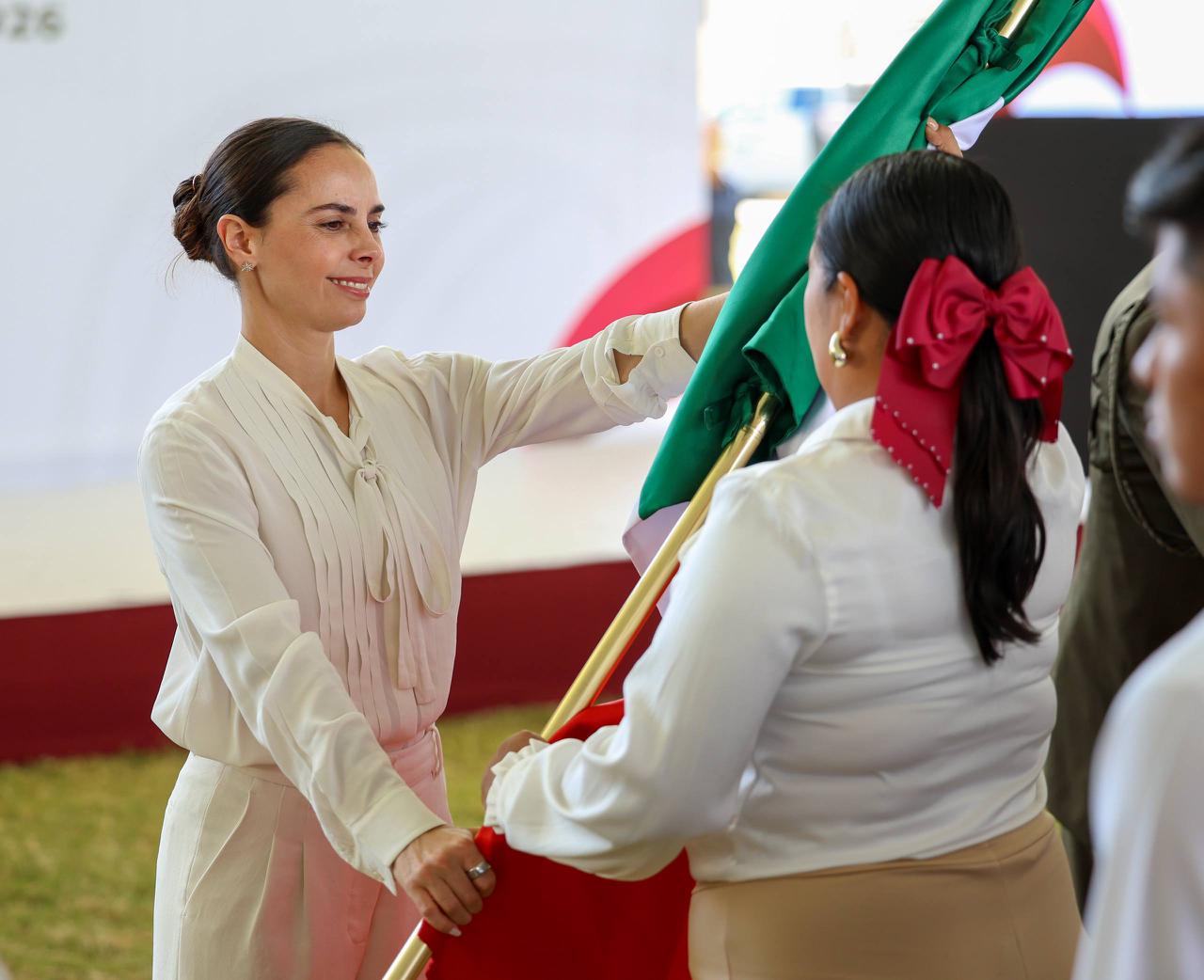 26 de Febrero del 2026.- En una emotiva ceremonia realizada en el marco del CCV Aniversario del Día de la Bandera, la Presidenta Municipal, Ana Paty Peralta, acompañó a la gobernadora Mara Lezama en el izamiento del lábaro patrio en la Zona Hotelera. El evento destacó por el profundo respeto a nuestros símbolos nacionales, donde la bandera ondeó en lo más alto del asta monumental, recordando a todos los presentes la importancia de la unidad y la identidad mexicana. Durante el acto, se resaltó que honrar a nuestra enseña nacional es fundamental para fortalecer los valores cívicos en las nuevas generaciones de cancunenses.