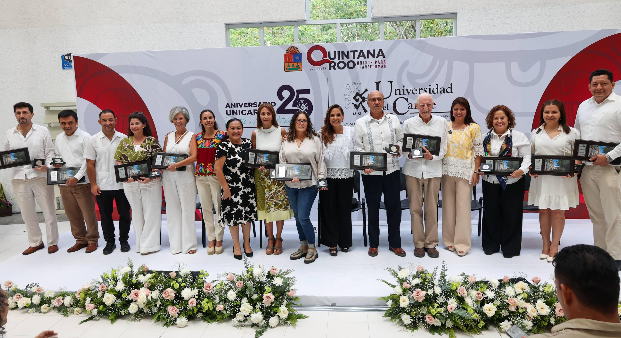 Cancún, Q. R., a 29 de septiembre de 2025.- La comunidad de la Universidad del Caribe (Unicaribe) se vistió de gala para conmemorar el 25 Aniversario de la institución, un evento que reunió a líderes estatales y municipales. La Presidenta Municipal, Ana Paty Peralta, y la gobernadora, Mara Lezama, participaron activamente en la celebración de esta casa de estudios que, a lo largo de un cuarto de siglo, ha sido fundamental en la formación de profesionales. La Unicaribe ha consolidado su papel en la construcción del presente y futuro no solo de Cancún, sino de todo el estado.