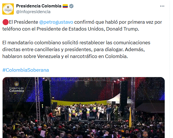 No obstante, tras el aumento del conflicto verbal, ambos líderes lograron restablecer comunicación directa a través de una llamada telefónica de aproximadamente una hora, en la que acordaron discutir temas clave como la lucha contra el narcotráfico y otros desacuerdos diplomáticos.