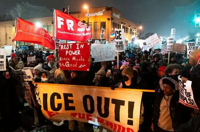 La indignación no solo se vive en las calles con adultos, sino que ha llegado a las escuelas, donde cientos de estudiantes de la secundaria Roosevelt realizaron una caminata de protesta. Con pancartas que exigen la salida de las autoridades federales, los jóvenes compararon la situación actual con sociedades distópicas de la literatura popular. El sentimiento de rechazo hacia las tácticas del organismo federal de control migratorio parece extenderse rápidamente entre las nuevas generaciones de Minesota.