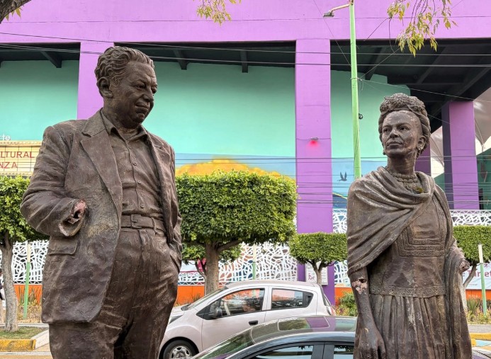 26 DICIEMBRE 2025-NACIONAL-CDMX- Los daños en esculturas de Diego Rivera y Frida Kahlo encendieron la preocupación de vecinos y usuarios de redes sociales en la alcaldía Venustiano Carranza, al oriente de la Ciudad de México. Las efigies muestran a Diego Rivera sin la mano derecha y a Frida Kahlo sin el brazo izquierdo, además de una perforación visible en su brazo derecho a la altura del codo. Junto a ellas, una placa de concreto con una frase de la pintora aparece con cuarteaduras y fragmentos desprendidos en el suelo.