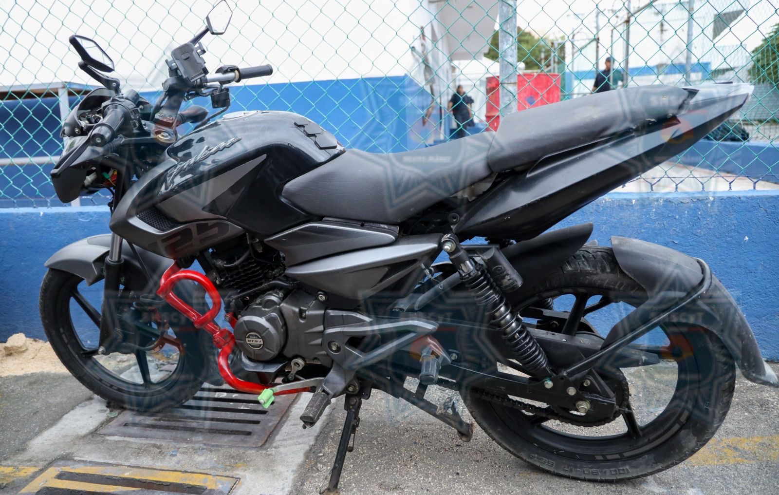 Durante la misma revisión, las autoridades verificaron el estatus legal de la motocicleta en la que se encontraban las personas detenidas. El vehículo, marca Bajaj, tipo Pulsar 125 NS, color negro con gris y sin placa de circulación, contaba con un reporte de robo vigente.