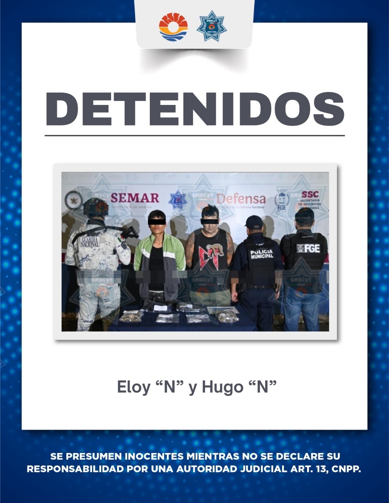 Las autoridades informaron que Eloy “N”, de 18 años, y Hugo “N”, de 36 años, fueron asegurados en el lugar y puestos a disposición del Ministerio Público para definir su situación jurídica conforme a la ley.