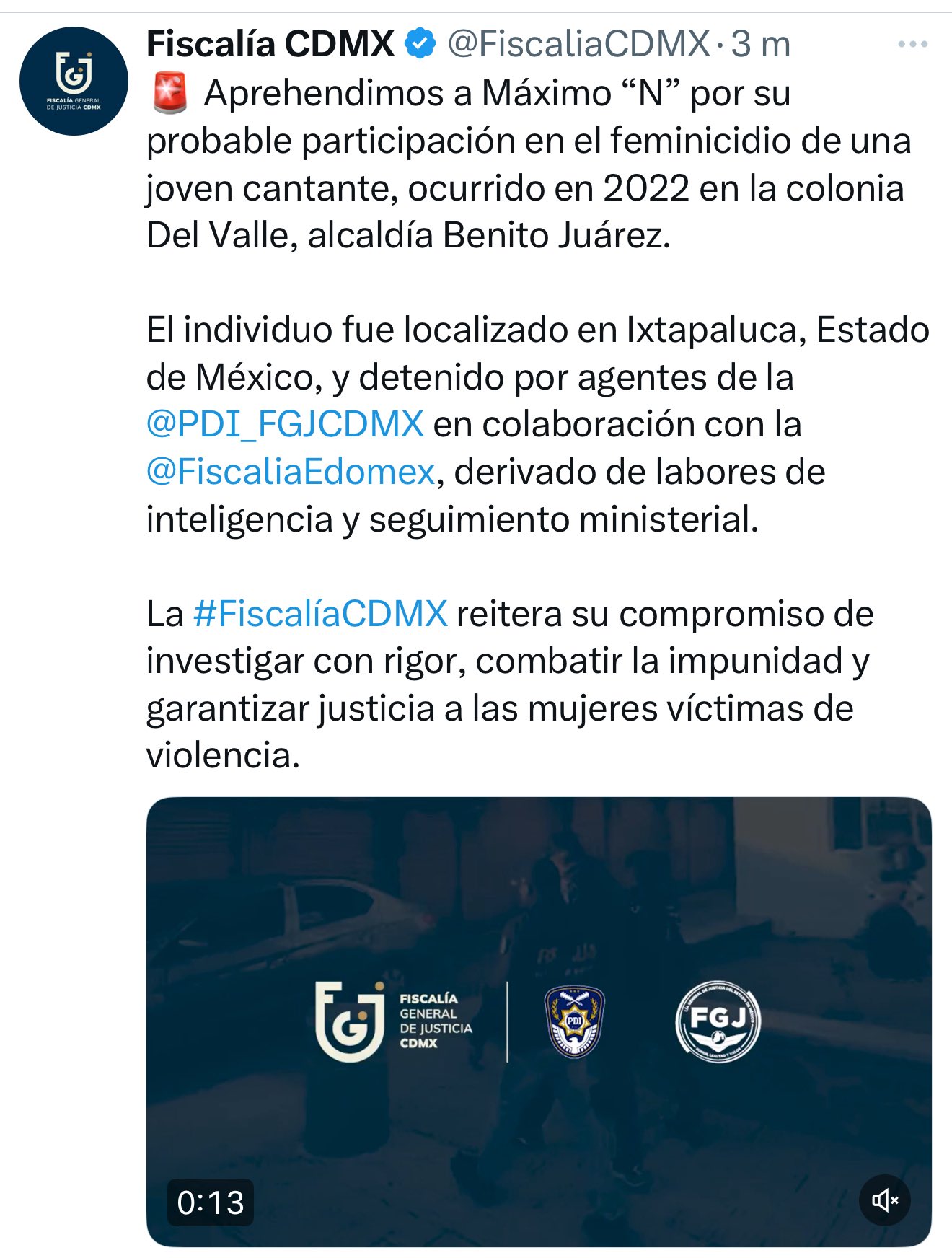 Aunque la Fiscalía CDMX no ha detallado públicamente la naturaleza exacta de la participación de Máximo “N” en el feminicidio, el hecho de que se haya girado una orden de aprehensión por su probable implicación indica que existen pruebas sólidas que lo vinculan al crimen. En este tipo de casos, el segundo implicado suele estar relacionado con actos de encubrimiento, apoyo logístico o presencia durante el hecho que facilitó la comisión del delito. Su declaración será fundamental para definir su papel y el de otros posibles coautores.