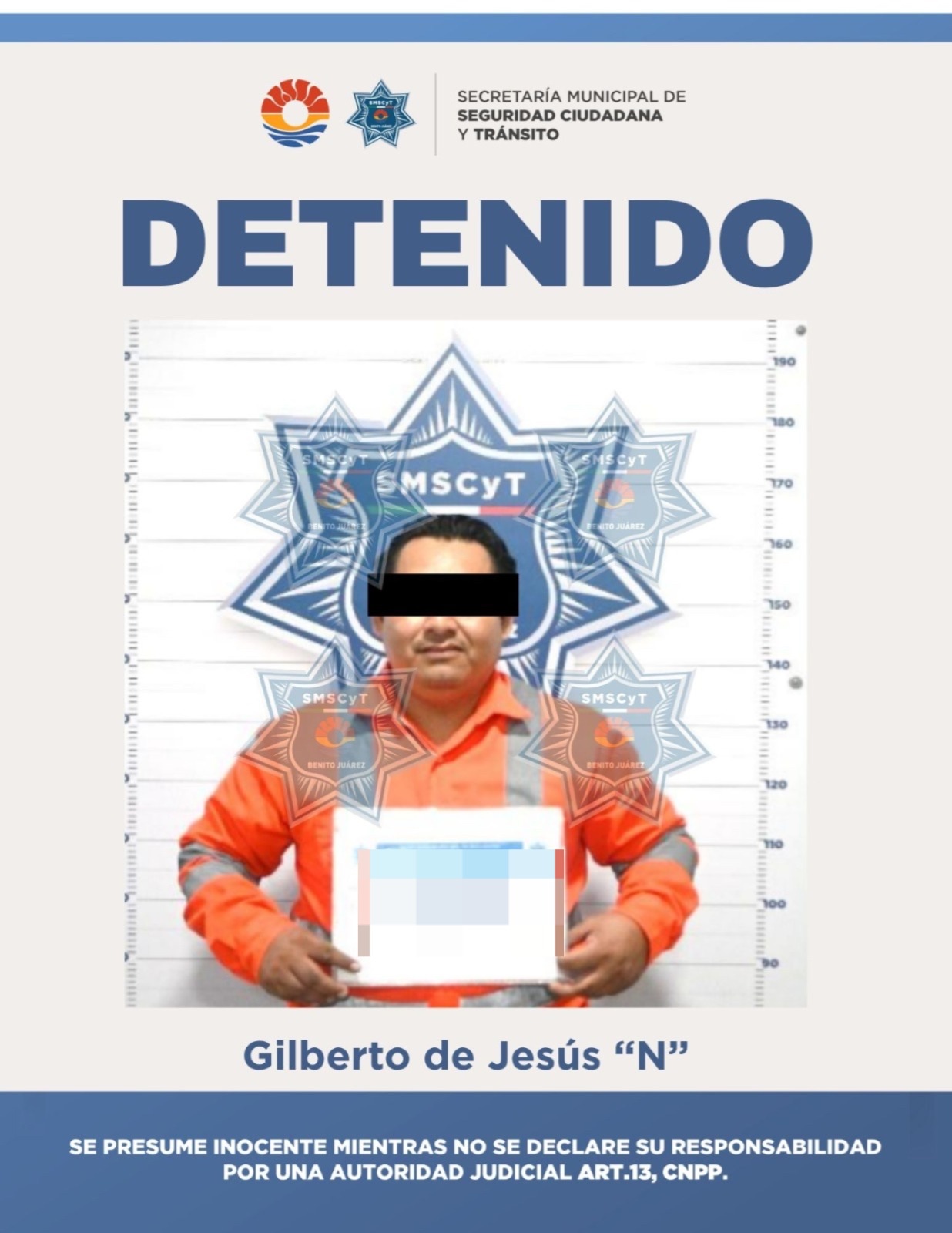 23 de Octubre del 2025.- Un conductor fue detenido por elementos de la Dirección de Tránsito en Cancún este jueves 23 de octubre, por su presunta participación en el delito de desobediencia y resistencia de particulares. El hombre, identificado como Gilberto de Jesús “N”, de 40 años de edad, fue asegurado después de una persecución y de agredir físicamente a un agente que intentaba aplicarle una sanción en la Supermanzana 95.