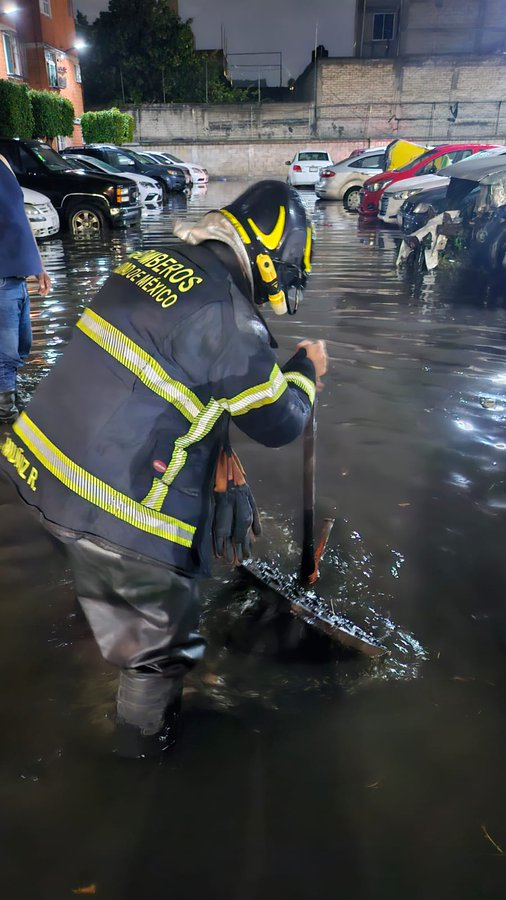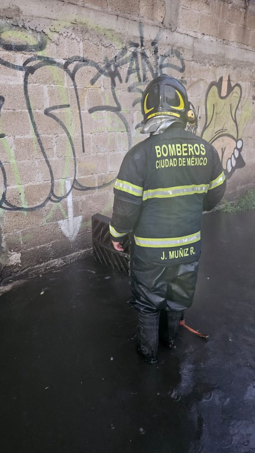 Uno de los incidentes más delicados ocurrió en la colonia Zacatenco, donde un adulto mayor quedó atrapado dentro de un vehículo en medio de un espejo de agua de 500 metros cuadrados. Elementos del Heroico Cuerpo de Bomberos y de Protección Civil lograron rescatarlo sano y salvo, mientras se realizaban labores de achicamiento en el lugar.
