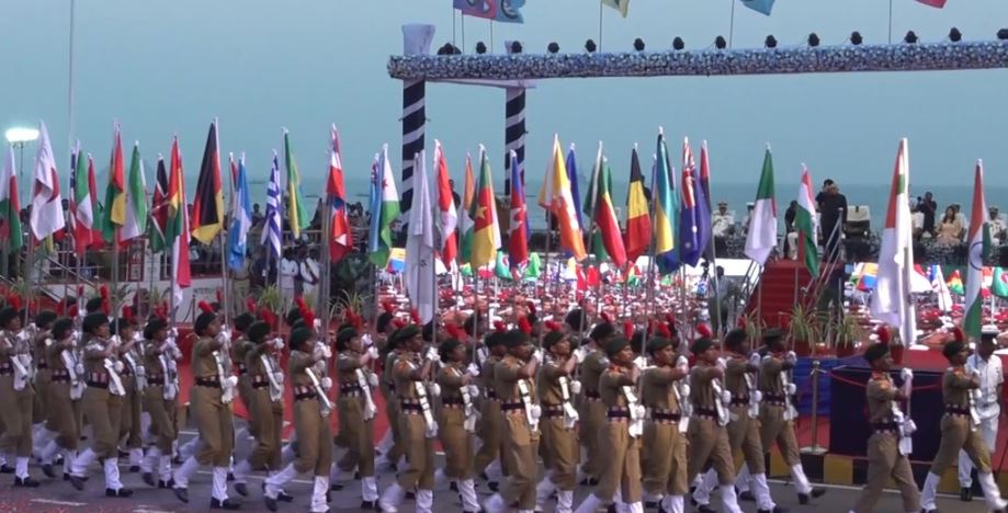 La fragata rusa Mariscal Sháposhnikov, perteneciente a la Flota del Pacífico de Rusia, arribó al puerto un día antes de la ceremonia inaugural. Durante el acto oficial se llevó a cabo un desfile a pie de las tripulaciones participantes, según informó el Ministerio de Defensa ruso.