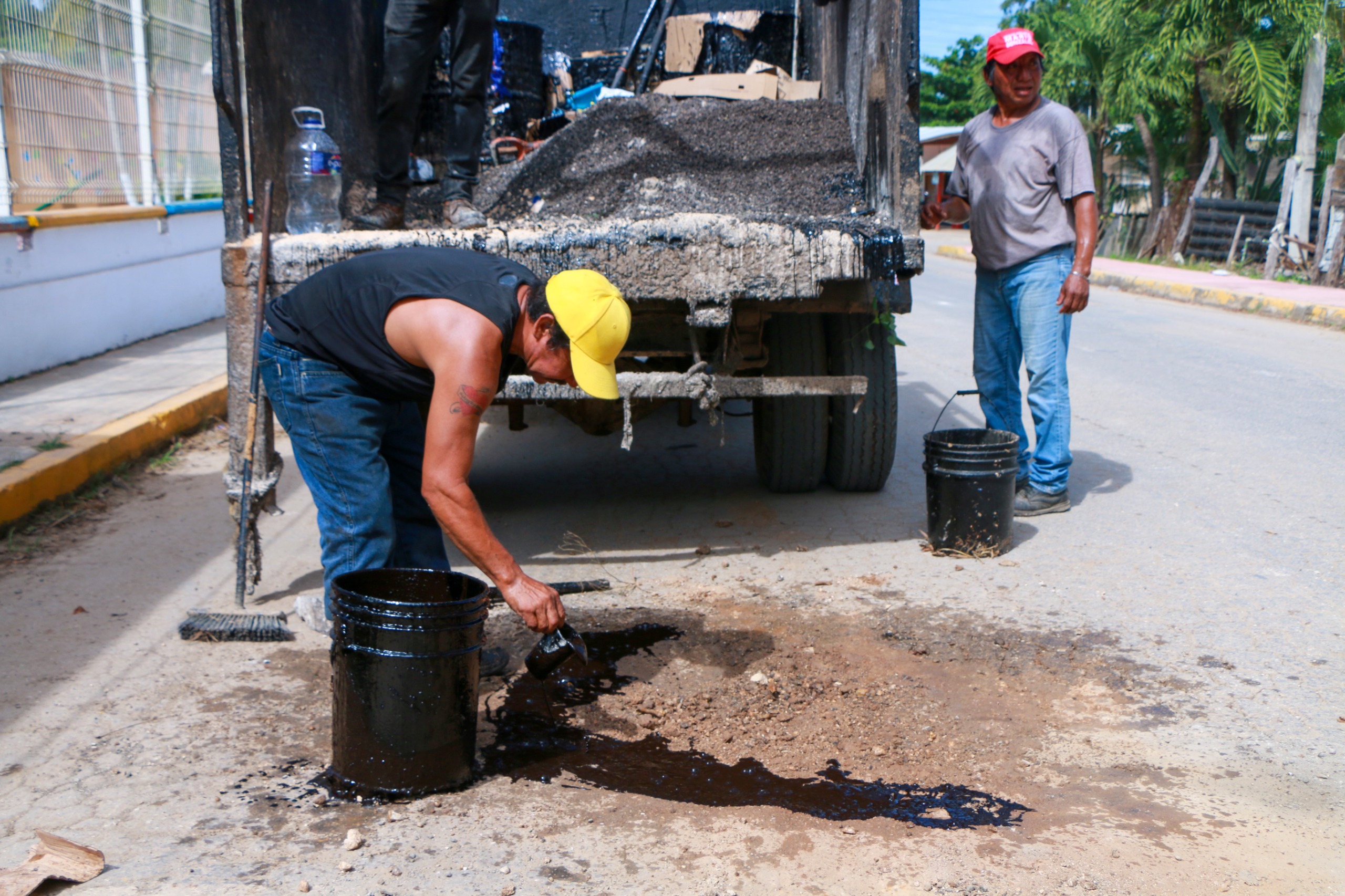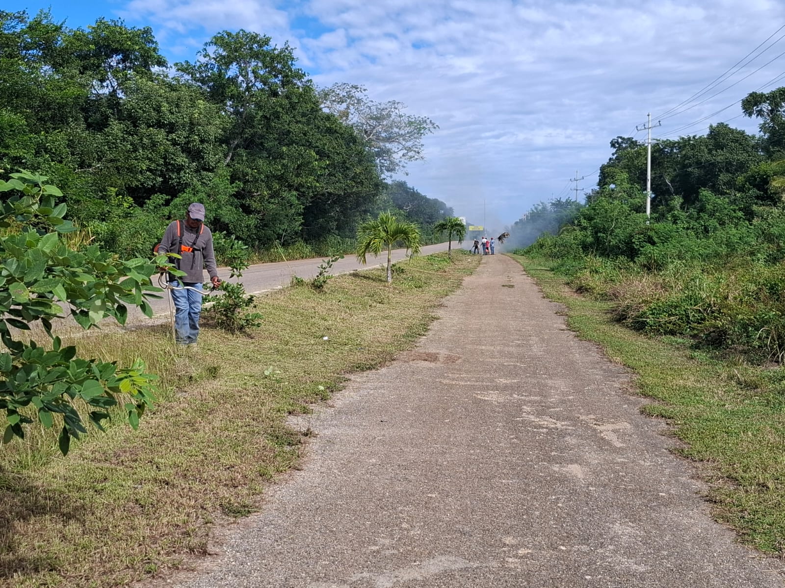 El equipo de trabajo se ha dividido para optimizar el tiempo y los recursos, logrando un avance simultáneo en distintos puntos del municipio. Mientras una parte del personal se enfoca en el bacheo dentro de las comunidades y en Kantunilkín, otra brigada crucial se ha dedicado a la limpieza y el desmonte. Este enfoque dual permite abordar problemas estructurales de las calles al mismo tiempo que se atiende la seguridad en áreas de alto flujo peatonal y estudiantil.