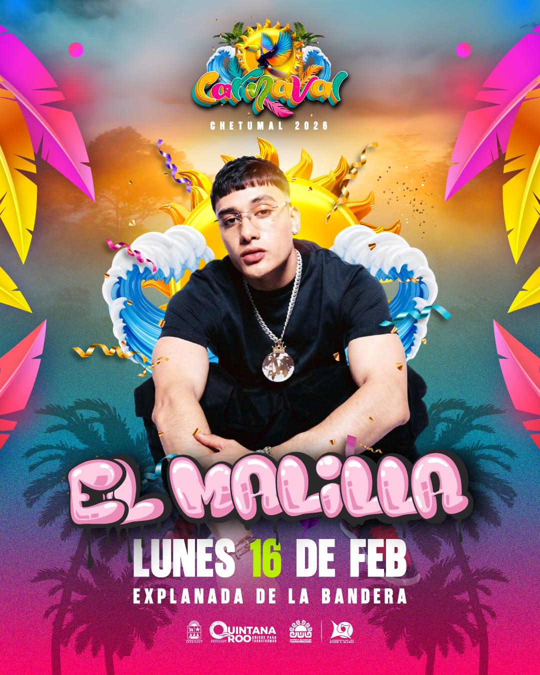 Para la noche de este lunes 16 de febrero, la cita es obligatoria en la Explanada de la Bandera para disfrutar de una cartelera artística de primer nivel. El programa incluye diversos bailables regionales y concursos donde el talento local podrá lucirse frente a los jueces y asistentes. El plato fuerte de la velada dentro del Evento de Carnaval Chetumal 2026 será la presentación estelar de «El Malilla», quien subirá al escenario para interpretar sus éxitos y prender el ánimo de todos los jóvenes y adultos que se den cita en el recinto.