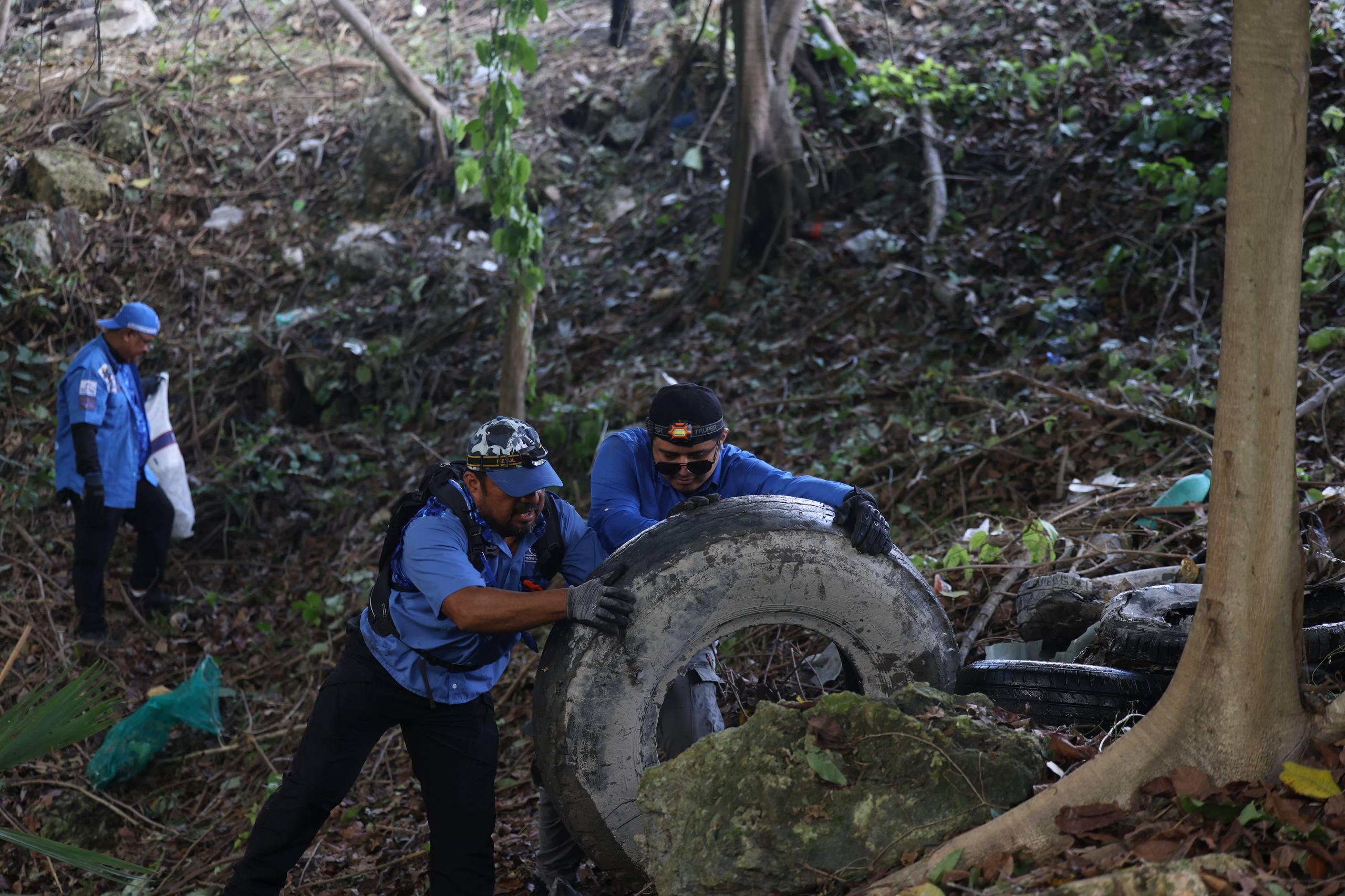 Durante la jornada se realizaron tareas intensivas de limpieza tanto en el cuerpo de agua como en sus alrededores inmediatos. Una de las acciones destacadas fue el uso de la técnica de rapel por parte de los Bomberos para poder retirar desechos y basura acumulada en las partes más altas y de difícil acceso del cenote. Este esfuerzo coordinado demostró la alta complejidad de la conservación y el compromiso de todas las partes involucradas.