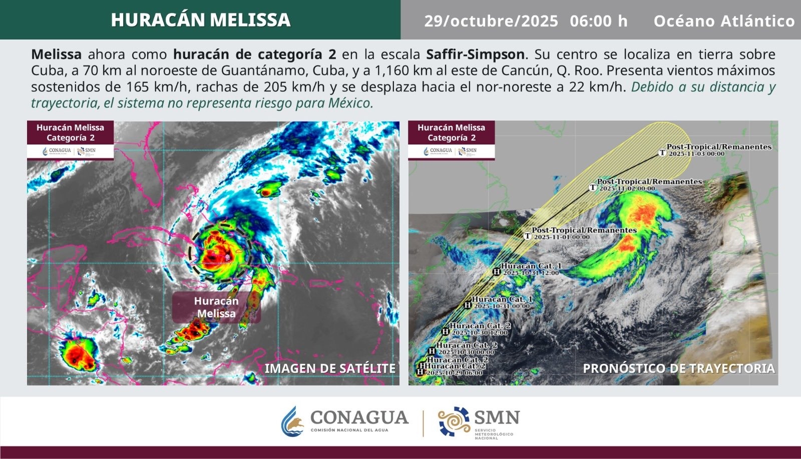 El comunicado oficial ofrece tranquilidad a los habitantes del sureste mexicano. Debido a la gran distancia a la que se encuentra y la trayectoria que mantiene, se confirma que el Huracán Melissa no representa ningún tipo de peligro para el territorio de México. Las autoridades de Quintana Roo y la península de Yucatán descartan cualquier afectación directa por este fenómeno.