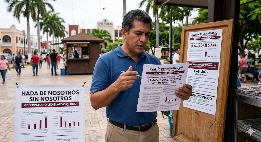 CANCÚN, Q. ROO – El Observatorio Legislativo de Quintana Roo emitió su nota informativa número 301, titulada “Nihil de nobis sine nobis” (Nada de nosotros sin nosotros), en la cual realiza un análisis crítico sobre los efectos del denominado “Plan B” de la Reforma Electoral tras su publicación en el Diario Oficial de la Federación.