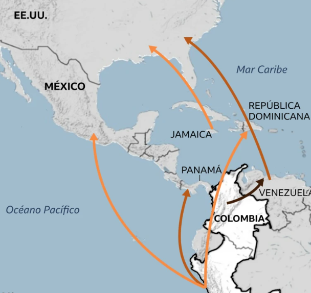 La cocaína, el otro gran problema del narcotráfico hacia EE.UU., sí tiene su origen en Sudamérica, específicamente en los tres países andinos productores de hoja de coca: Colombia, Perú y Bolivia. Desde allí, la hoja se procesa y el producto final, mayoritariamente clorhidrato de cocaína, es transportado de manera indirecta, transitando por naciones vecinas como Ecuador o Venezuela. Para el mercado estadounidense, la gran mayoría de la cocaína transita por la ruta del Pacífico. Las estimaciones de la DEA de 2019, que expertas como Elizabeth Dickinson del International Crisis Group confirman que siguen vigentes, indican que el 74% de los envíos se realiza por el Pacífico, mientras que solo un 16% usa el Caribe Occidental, donde se han concentrado la mayor parte de los ataques de EE.UU. contra lanchas rápidas.