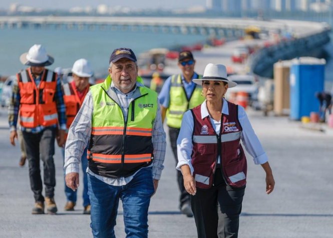 Las autoridades detallaron que varias secciones de la construcción están prácticamente concluidas, como el entronque Colosio y la zona terrestre, que registran un 99 por ciento de progreso. Asimismo, el sistema especializado «Top Down» y el puente de arco metálico presentan niveles de finalización sumamente altos, asegurando que la conectividad sobre el cuerpo de agua sea segura y duradera. Por su parte, la zona lagunar ya se encuentra al 97 por ciento, mientras que el entronque Kukulcán avanza con paso firme.