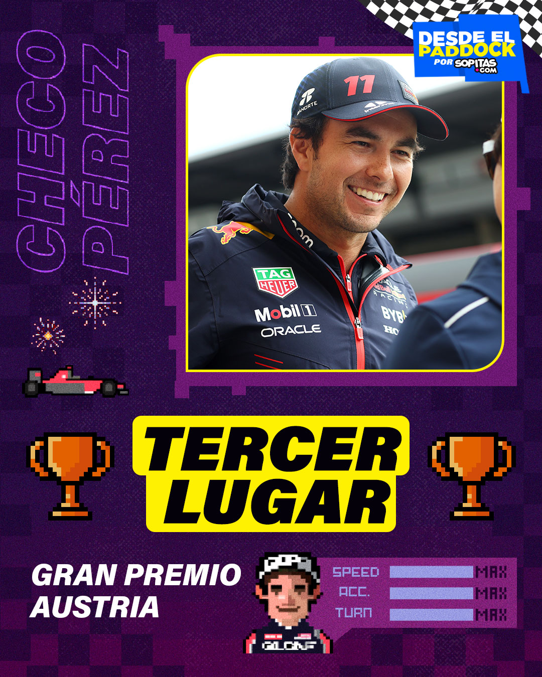 Checo Pérez hizo un carrerón y después de cuatro carreras frustrantes, el mexicano volvió al podio en Fórmula 1 después finalizar en el tercer sitio en el Gran Premio de Austria, después de largar en el décimo quinto sitio, y esto fue un negocio redondo para Red Bull, pues Max Verstappen conquistó su séptima victoria en la temporada y la número 42 en su carrera, con la cual supera los 41 triunfos de Ayrton Senna.
