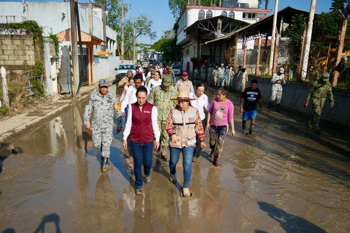Tempoal, Veracruz, 17 de octubre de 2025. — La Presidenta de México, Claudia Sheinbaum Pardo, reafirmó el respaldo total del Gobierno Federal a la población afectada por las lluvias extraordinarias en Veracruz, al supervisar directamente los trabajos de limpieza y apoyo en los municipios de Álamo y Tempoal. La visita, que marca su cuarto día consecutivo de recorridos por las zonas de desastre, tiene como objetivo principal asegurar que la ayuda llegue sin contratiempos a las familias que sufrieron pérdidas debido al temporal registrado entre el 6 y el 9 de octubre.