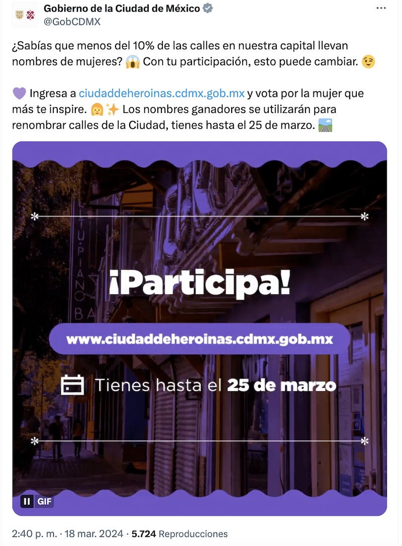 Los nombres ganadores se usarán precisamente para renombrar las calles de CDMX y pues la convocatoria estará abierta hasta el lunes 25 de marzo.