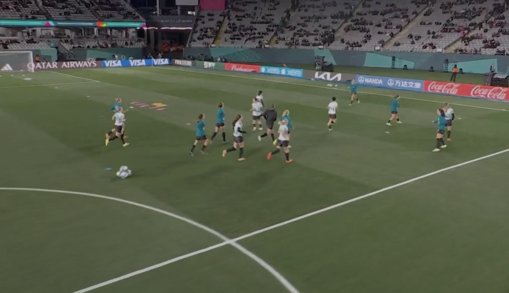 Antes de la ceremonia de inauguración, las jugadoras de Nueva Zelanda y de Noruega salieron a la calentar, lo cual despertó las primeras ovaciones desde las tribunas, que para ese momento lucían grandes huecos.
